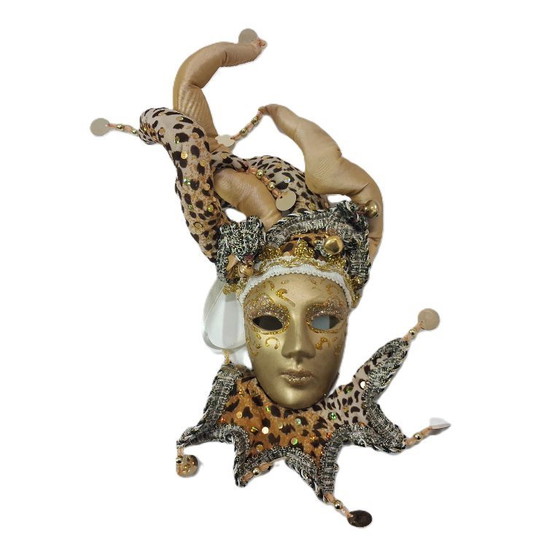 Esta máscara de bufón veneciana no es solo un objeto decorativo; es una pieza que destaca y que aporta un aire de misterio y elegancia a cualquier espacio. Imagínala adornando tu pared, despertando la curiosidad y la admiración de todos quienes la contemplen.