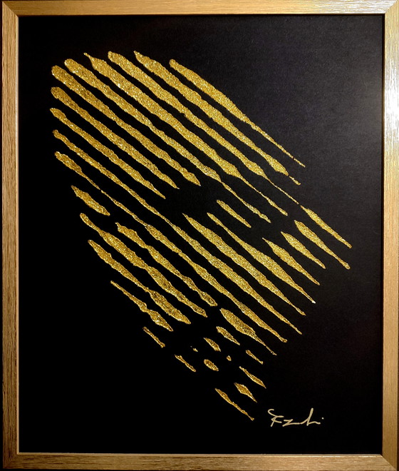 Esta es una impresionante obra de arte moderno de Maurizio Geraci titulada "Rayas divinas". La obra presenta llamativas rayas doradas sobre un fondo negro intenso, creando un cautivador contraste visual. La obra está elegantemente enmarcada, lo que realza su sofisticado atractivo. Perfecta para añadir un toque de lujo y modernidad a cualquier espacio.