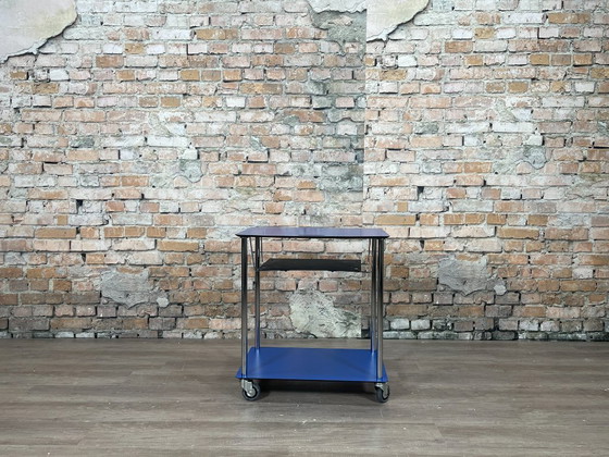 El Max & Dirk Trolley Blue es una mesa auxiliar elegante y funcional diseñada por Dirk Vander Kooij. Con su característico plástico reciclado y sus robustas ruedas, esta pieza de diseño es práctica y duradera.