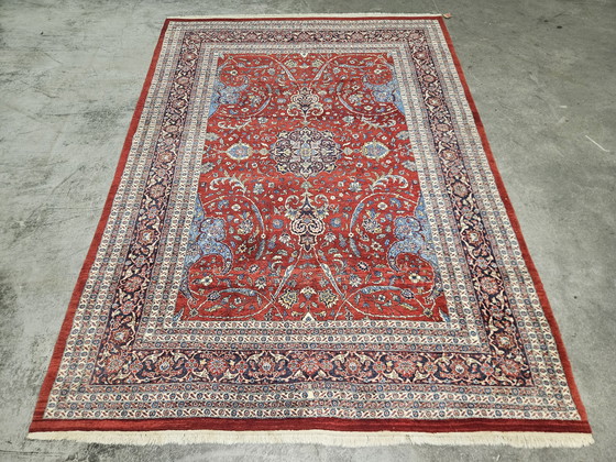 Medallón de alfombra Saruk de lana oriental anudado a mano 247x344cm