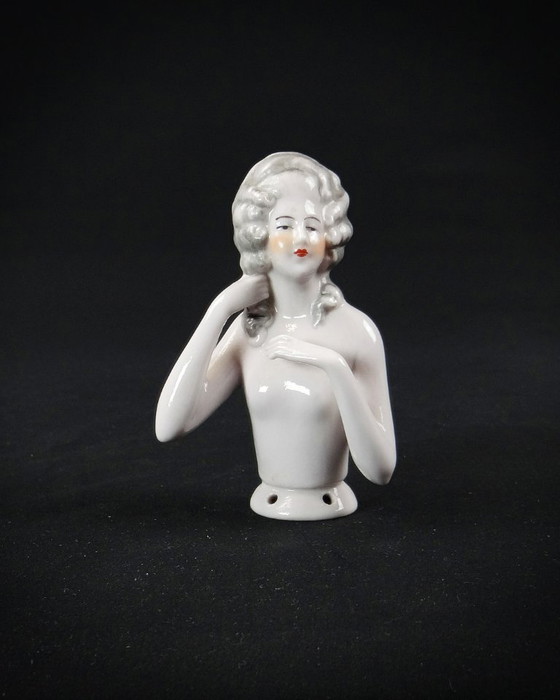 ¿Un juguete, un accesorio? Esta media muñeca es mucho más. Procedente del frágil y sofisticado mundo de la porcelana alemana de principios del siglo XX, esta media figurita, también conocida como "media muñeca", es una auténtica pieza de coleccionista.
