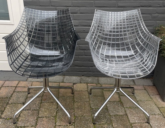 Las sillas Meridiana de Driade (diseñadas por Christoph Pillet) son una hermosa adición a cualquier interior. Con su diseño único y materiales de alta calidad, estas sillas ofrecen estilo y comodidad. Los asientos de plástico transparente y gris oscuro crean una estética atractiva que se integra a la perfección en un ambiente contemporáneo.