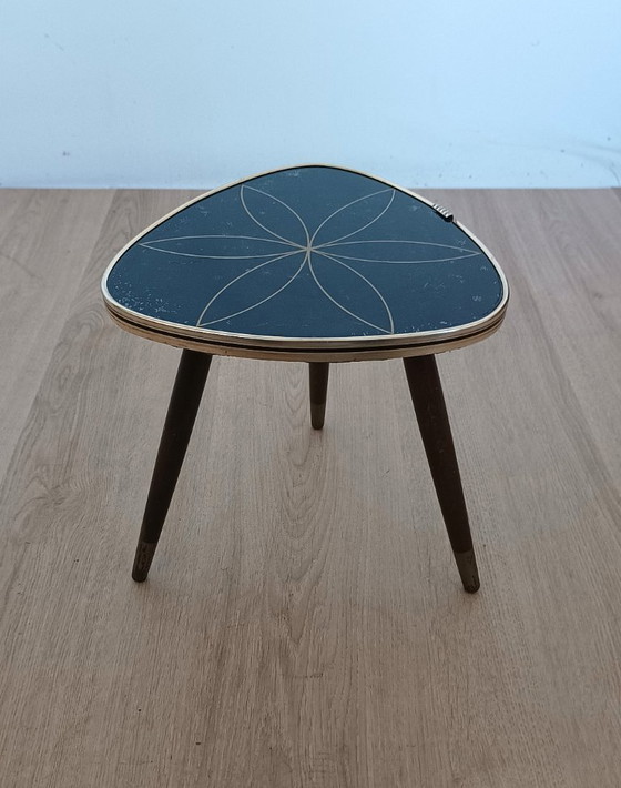 Mesa auxiliar de los años cincuenta con tapa de cristal