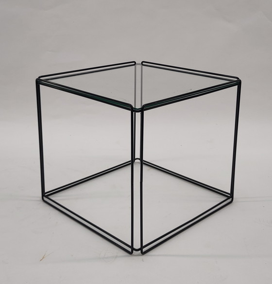 Descubre la elegante sencillez de la mesa auxiliar Isocele de Max Sauze, una obra maestra del diseño moderno. Esta mesa combina una estilizada estructura metálica con una superficie de cristal transparente, creando un aspecto ligero y refinado que se integra a la perfección en cualquier interior contemporáneo.