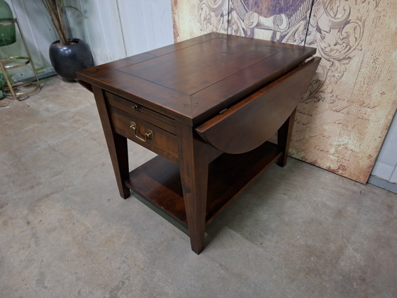 Esta clásica mesa auxiliar inglesa abatible es un complemento sofisticado para cualquier interior. Con su cálido tono marrón y elegante diseño, aporta un toque de encanto tradicional a tu sala de estar. Fabricada con madera de alta calidad y con tiradores de latón, realza su aspecto clásico.
