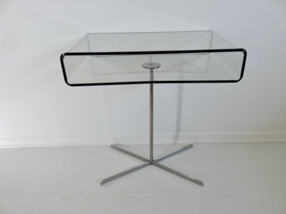 Mesa auxiliar "Roche Bobois" de plexiglás y metal cromado, Francia, años 80