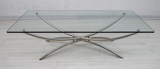 Mesa baja italiana de cromo y cristal de mediados de siglo, años 70
