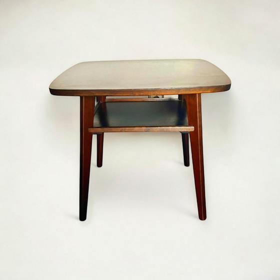 Mesa bandeja/mesita auxiliar de mediados de siglo con estante. Mesa auxiliar alemana de alta calidad, años 40-50.