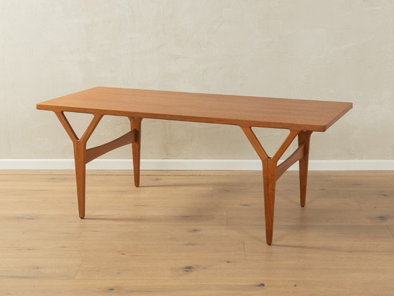 Mesa de centro clásica de Kurt Østervig para Jason Møbler de la década de 1950. Estructura de teca maciza de alta calidad con tablero de chapa de teca y cantos de madera maciza. Diseño logrado con proporciones perfectas y una evidente atención al detalle. Acabado de alta calidad con materiales de primera calidad. Tablero con cantos de madera maciza. Fabricada en Dinamarca, diseño de Kurt Østervig, fabricante de Jason Møbler.