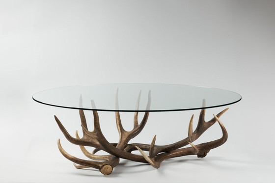 Transforma tu sala de estar con esta mesa de centro única que sin duda causará sensación. Con una impresionante base de asta de ciervo natural, esta pieza aporta un toque natural a tu hogar. Su tablero de cristal transparente le da un toque moderno, permitiendo que los intrincados detalles de las astas resalten. Perfecta para quienes aprecian la combinación de encanto rústico y estilo contemporáneo, esta mesa es a la vez funcional y una obra de arte.