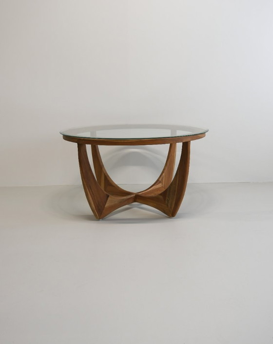 Mesa de centro de teca maciza con tapa de cristal – hecha a mano