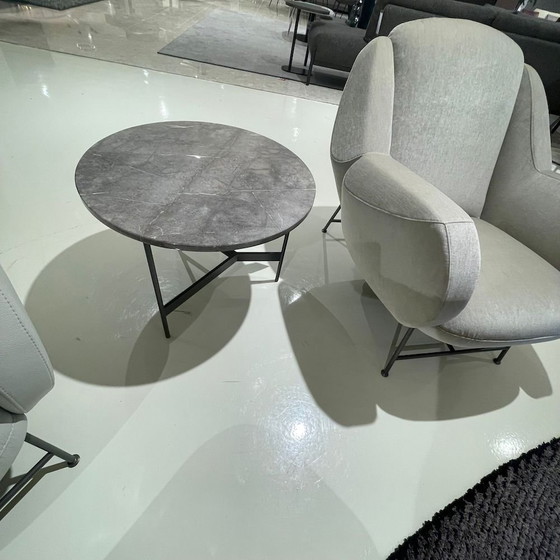 Mesa de centro Leolux Tampa * Mesa de centro de diseño redondo con tablero de mármol gris y base negra * Tablero: mármol gris Rigna * Base: Epoxy Nuit Silk * Redonda: 60 cm * Se puede combinar fácilmente en una configuración de mesa de centro * También es hermosa como mesa auxiliar