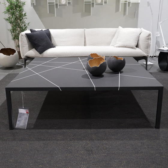 Mesa de centro cuadrada MDF Italy Tense, ideal para salones modernos y clásicos. Tablero y estructura de mármol negro. Dimensiones: 150 x 150 x 45 mm. Daños en una pata. Incluye gastos de envío.