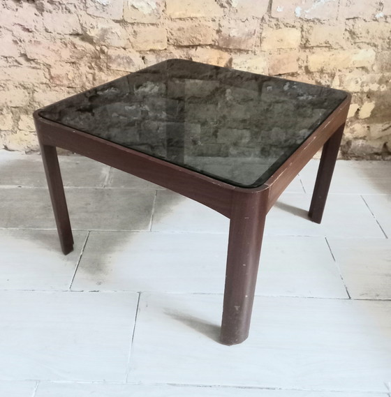 Estructura de palisandro y cristal ahumado. Buen estado general. Con señales del paso del tiempo.