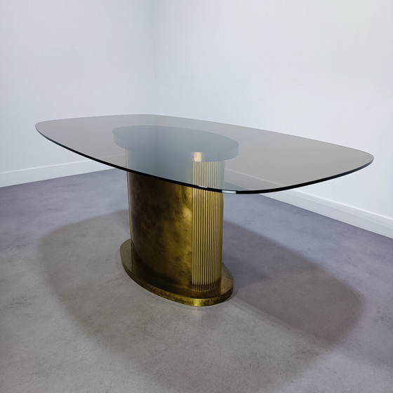 Mesa de comedor Belgochrom con tablero de cristal ahumado