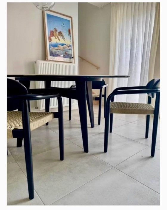 La mesa de comedor Calligaris 'ABREY' es un ejemplo de elegancia moderna y artesanía. Con una base de fresno macizo negro mate y un hermoso tablero de mármol, esta mesa ofrece un aspecto refinado que realzará cualquier comedor.