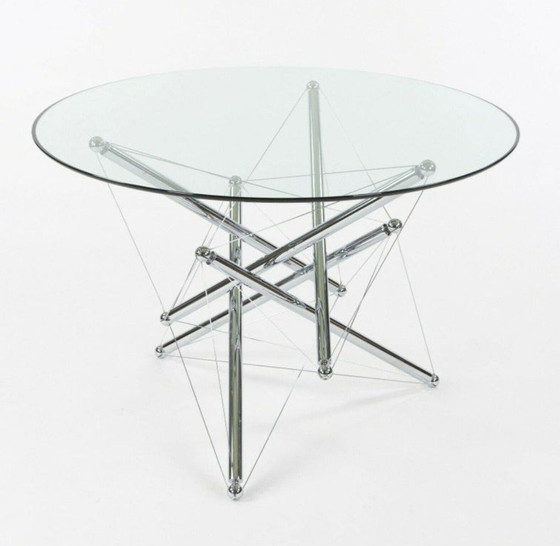 La mesa de comedor Cassina 714 Tensegrity, diseñada por Theodore Waddell, es un magnífico ejemplo de diseño moderno. Con su tablero de cristal y su singular estructura metálica, esta mesa añade un toque de elegancia a cualquier comedor. Combinando estética y funcionalidad, es un auténtico punto de atracción. La altura de la mesa se puede ajustar inclinando la estructura de acero.