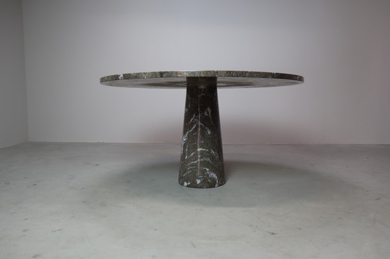 Esta icónica mesa de comedor Eros, diseñada por el maestro italiano Angelo Mangiarotti, es un clásico atemporal del diseño moderno. Fabricada en mármol Mondragone de alta calidad, se caracteriza por su estética minimalista y su innovadora construcción. Su diseño incorpora un exclusivo sistema de unión por gravedad, donde la tapa de mármol macizo y la base cónica encajan a la perfección sin necesidad de juntas ni tornillos convencionales. Esto da como resultado una construcción estable y robusta, elegante y escultural a la vez. Diseñada en 1971 para Skipper, Italia, esta pieza refleja la maestría de Mangiarotti con el material y la forma. El uso del mármol Mondragone, con sus llamativas vetas y su profundo color, añade un toque lujoso y refinado a cualquier interior. Esta mesa no es solo un mueble funcional, sino también una obra de arte que transforma cualquier espacio. Perfecta para los amantes del diseño que buscan una pieza distintiva con una rica historia y un inconfundible estilo italiano. Diámetro: 136 cm Alto: 72 cm