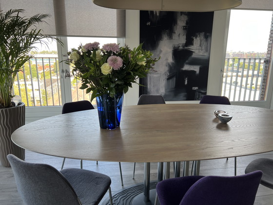 Añada un toque de elegancia moderna a su hogar con esta hermosa mesa de comedor. ¡Contáctenos para más información o para programar una visita!