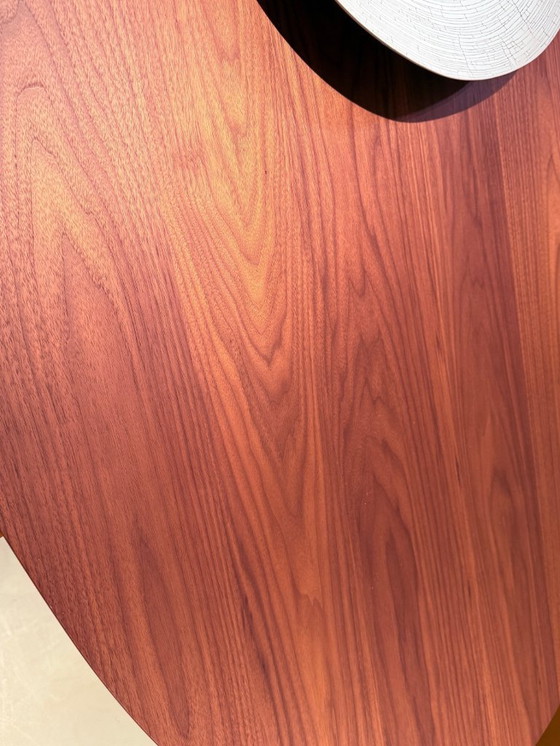 Tras el éxito de las mesas de centro y auxiliares Twinny, la demanda de mesas de comedor Twinny aumentó. La mesa de comedor Twinny es básicamente una versión más grande de la mesa de centro Twinny XL y está disponible en los mismos materiales que las mesas de centro y auxiliares. El tablero orgánico se apoya en tres patas metálicas negras y ligeras.