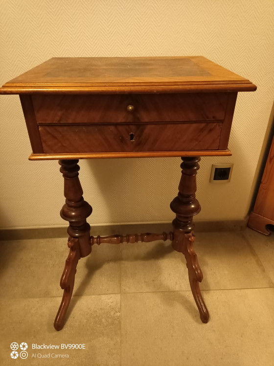 Esta encantadora mesa de costura aporta un toque vintage a tu hogar. Con su ingeniosa carpintería y elegantes detalles, será el centro de atención en cualquier habitación.