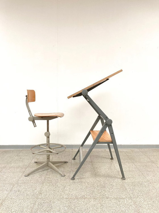 Mesa de dibujo «Reply» de Friso Kramer/Wim Rietveld con silla de arquitecto.