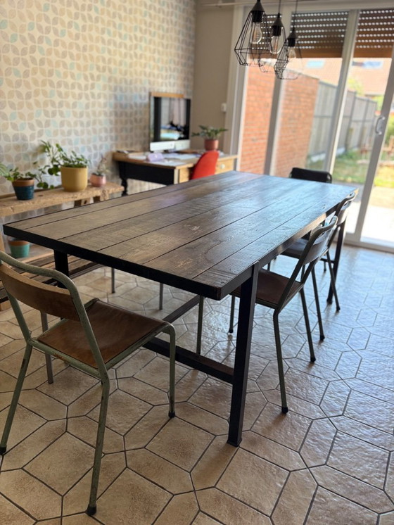Mesa de comedor de estilo industrial hecha a medida, en perfecto estado.