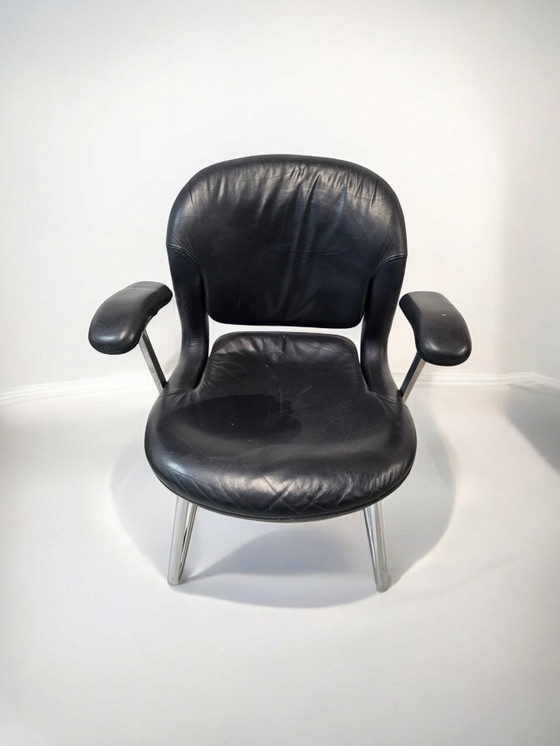Precioso y elegante sillón de cuero de diseño de mediados de siglo / sillón de conferencia / sillón de oficina / sillón de
