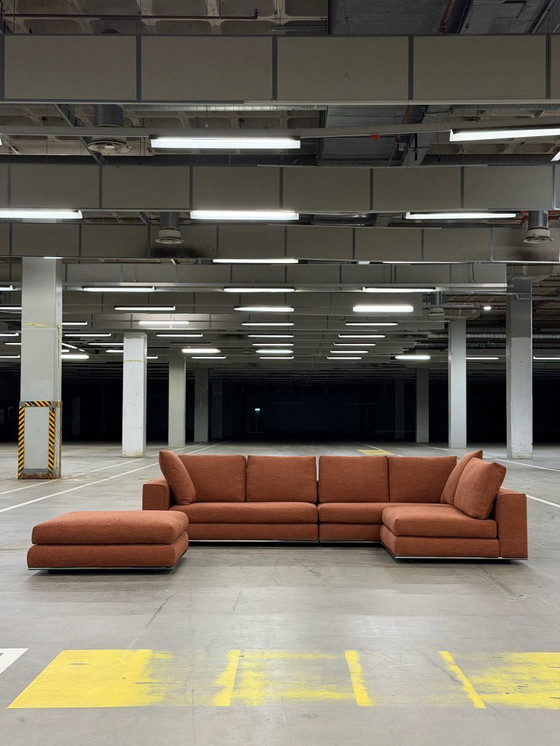 Este sofá Minotti Hamilton en un cálido tono terracota presenta un diseño elegante y atemporal que combina lujo y comodidad a la perfección. Su construcción modular con elementos móviles permite una configuración flexible y una fácil adaptación a diferentes espacios y necesidades. La tela de alta calidad tiene una textura hermosa y rica, mientras que el asiento ofrece una sensación de firmeza y soporte, tal como se espera de Minotti.