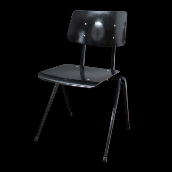 Modelo S17 de Galvanitas. La silla se presenta con asiento y respaldo de madera negra sobre un armazón de metal negro.