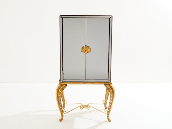 Mueble bar Maison Jansen de madera dorada y espejos 1940