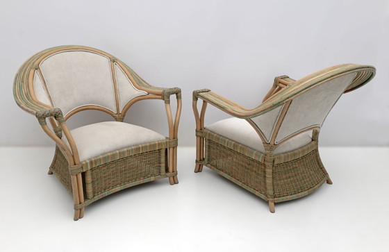 Pair of Mid-century Modern Italian Rattan and Wicker Armchairs, 1970s