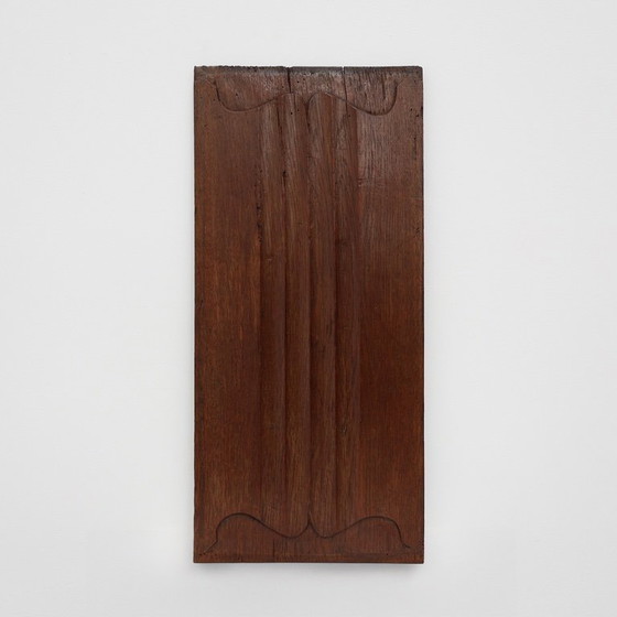Un panel de roble gótico finamente tallado, procedente de Francia, del siglo XVI. Este fragmento arquitectónico presenta un elegante acanalado vertical enmarcado por arcos fluidos y elegantes tanto en la parte superior como en la inferior: un motivo gótico sutil pero inconfundible. La profunda y cálida pátina, junto con las marcas visibles de las herramientas manuales, dan fe de siglos de historia y maestría artesanal.