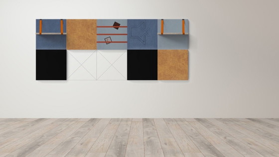Conjunto de 8 paneles de pared Dock en varios colores y materiales, con sistema de montaje completo.