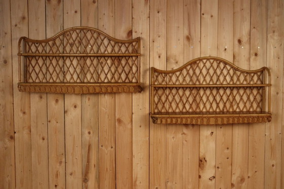 Excepcional par de estantes de pared de ratán, años 60/70.