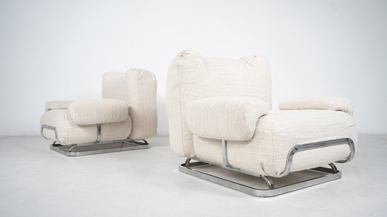 Par de sillones de mediados de siglo, cromados y tapizados en bouclé