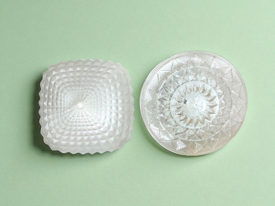 Pareja de lámparas empotradas vintage de los años 90 que pueden utilizarse como plafones o apliques.