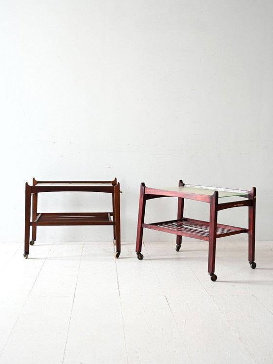 Pareja de mesas auxiliares escandinavas de caoba de los años 40