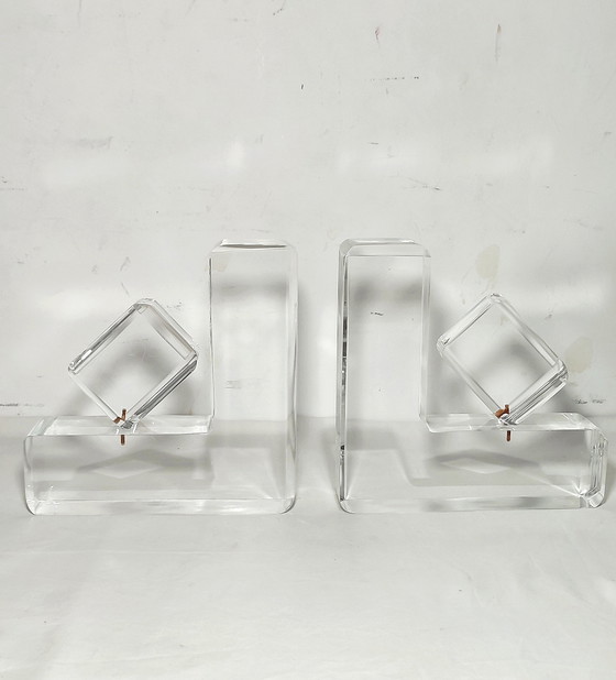Pareja de sujetalibros de metacrilato. España, años 80.