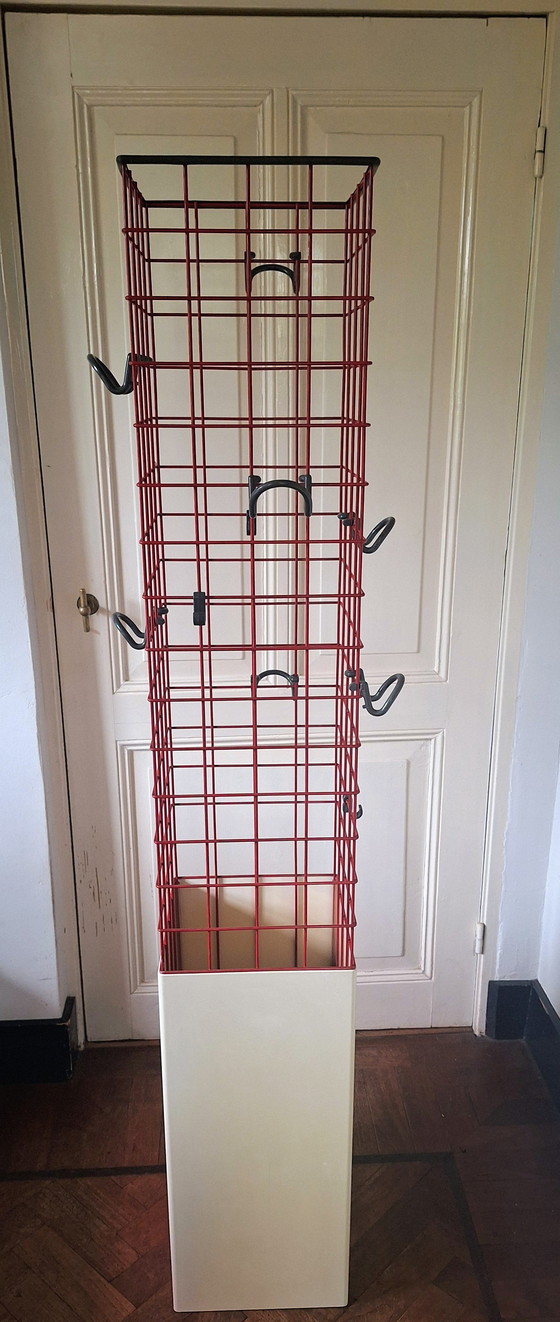 Este icónico perchero, diseñado por Anna Castelli Ferrieri para Kartell en la década de 1980, es un bello ejemplo del diseño italiano. La combinación de una estructura metálica roja con ganchos grises y una base color crema lo convierte en una pieza llamativa y funcional para cualquier recibidor.