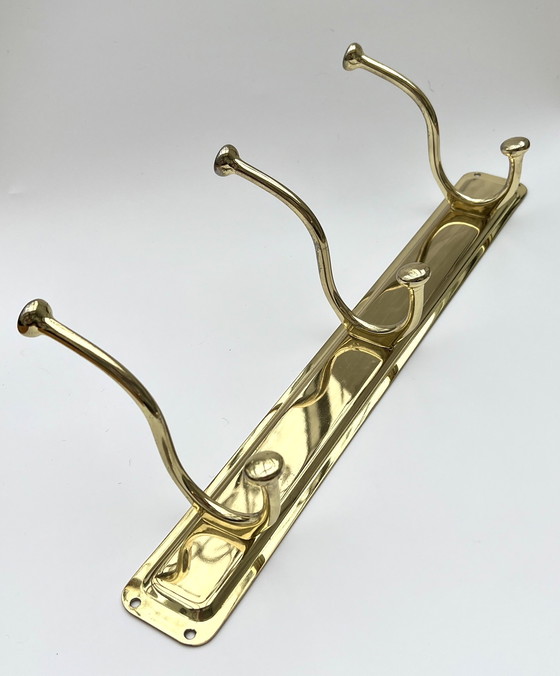 Perchero de pared de latón pulido con tres ganchos dobles, década de 1970-1980