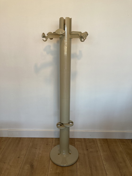 Perchero de pie de plástico "Planta" de Giancarlo para Castelli. La parte superior tiene seis ganchos plegables. La parte inferior tiene dos anillas extensibles para paraguas. Marcado en la parte inferior. En buen estado vintage.