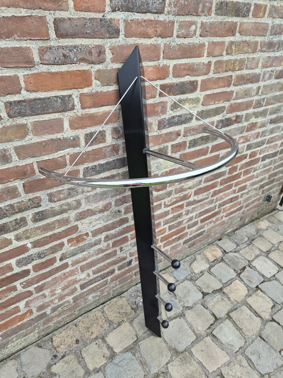 Descubre este perchero posmoderno único de los años 80, funcional y que sin duda llamará la atención en tu recibidor. Con sus líneas depuradas y su llamativo diseño, este perchero aporta un toque de modernidad a cualquier estancia.