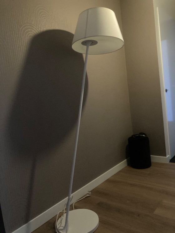 Una elegante lámpara de pie Philips Lirio - Posada que luce espléndida en cualquier salón, con un estilo atemporal y vanguardista.