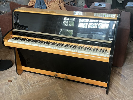 Hermoso y completamente fresco piano Schimmel de 1957. Schimmel 97K Cappricio nr 37872. Piano especialmente bello y de estilo separado. En 1957, muchos pianos nuevos eran algo más pequeños porque mucha gente en aquella época tenía casas pequeñas. Lo mismo ocurría con este piano, que tiene un bello color y un sonido brillante.