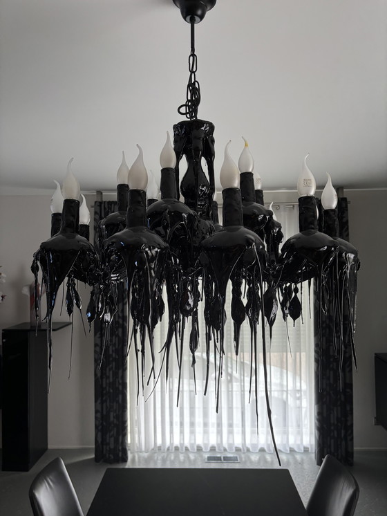 Presentamos una exquisita lámpara de araña diseñada por Piet Boon para Maretti, esta pieza es una sorprendente encarnación de la elegancia moderna. Su exclusivo acabado en negro emana un aura atrevida y contemporánea, que la convierte en la pieza central ideal para cualquier interior sofisticado. El candelabro está meticulosamente fabricado a mano con poliuretano, un material robusto pero flexible que garantiza tanto la durabilidad como la elegancia. Este diseño es tan artístico como funcional, con 12 brazos y 24 luces, que proporcionan una amplia iluminación a la vez que realzan el atractivo estético de su espacio. Perfecta para quienes aprecian el diseño refinado, esta lámpara de araña promete ser un cautivador punto focal en cualquier ambiente moderno.