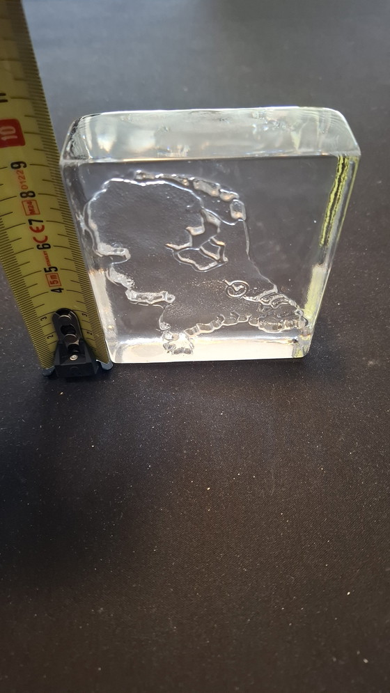 Este precioso pisapapeles de Royal Leerdam es un refinado ejemplo de artesanía y elegancia. Su cristal transparente refleja la luz, aportando un sutil brillo a tu escritorio o estantería.