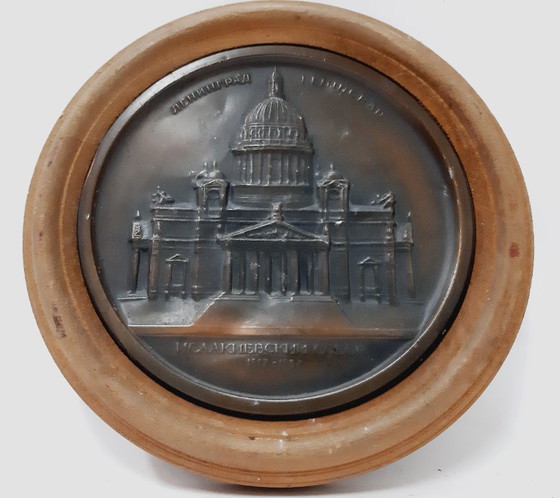 - Elaborada con un robusto marco de madera y un detallado relieve metálico, esta placa muestra la icónica arquitectura de Leningrado con una precisión notable.