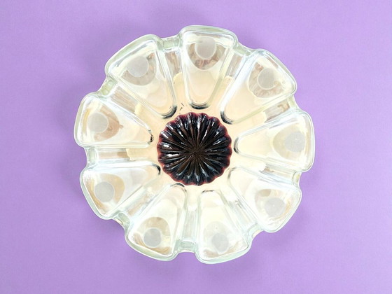Exquisita lámpara empotrada para la pared o el techo. Está fabricada con una combinación de cristal transparente y esmerilado y una placa de montaje de aluminio.