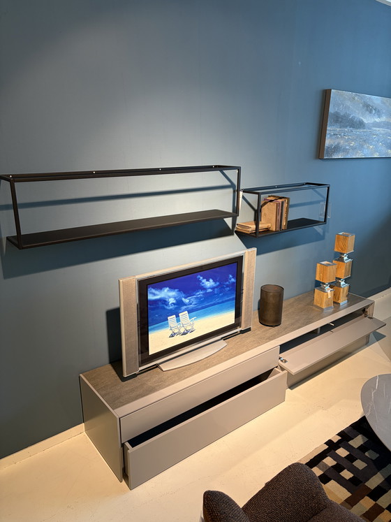 Este moderno mueble de pared ofrece una solución elegante y funcional para tu sala de estar. La plataforma para TV con estantes a juego combina elegancia con práctico espacio de almacenamiento, convirtiéndose en el complemento perfecto para cualquier interior. Sus líneas depuradas y el uso de materiales de alta calidad garantizan un estilo atemporal.